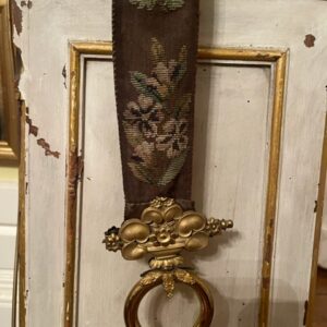 Victorian bell pull of tapestry with gilt brass handle.