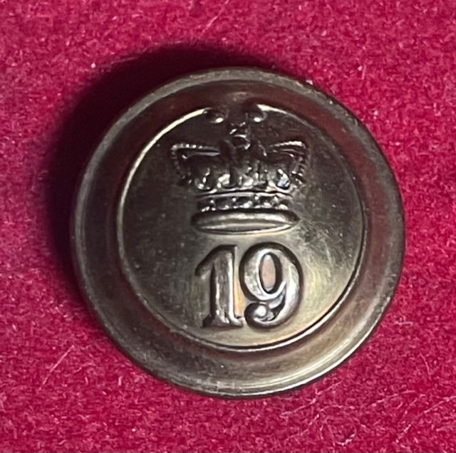 A 25mm brass button of the 19th Foot, 1st Yorkshire North Riding (Princess of Wales’s Own) as worn on the scarlet tunic. The button has the backmark   SMITH & WRIGHT BIRMINGHAM and is the pattern worn from 1855 to 1881 when its title became 1st & 2nd Bns. The Green Howards (Alexandra, Princess of Wales’s Own Yorkshire Regiment. The steel plate with the backmark is somewht degraded but sound and the brass is very good   sep28/2