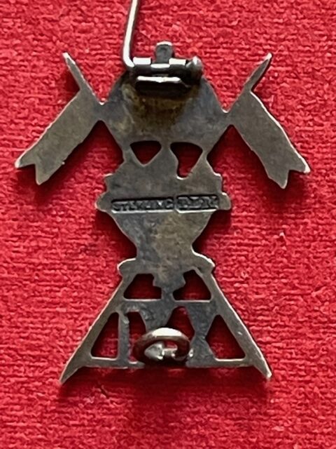 21st (Empress of India’s) Lancers. A small enamelled silver brooch, 30 x 25mm with the regimental badge with roman numerals XXI between the lances and Queen Victoria’s Indian cypher VRI in the centre. The badge is stamped by the maker on the back STERLING TLM . There is a little minor damage or the enamel in a few places but this is a rare survival dating from the Edwardian period or possibly WW1: the regiment was disbanded in 1922. sep24/3