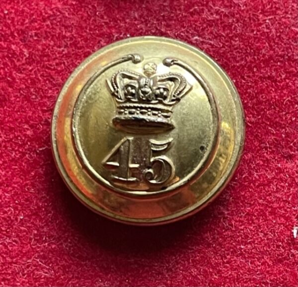45th Foot, Nottinghamshire, the 25mm officer’s gilt button of the pattern worn between 1855 and 1881, when it became the 1st Bn. The Sherwood Foresters (Nottinghamshire and Derbyshire Regiment. The backmark is JENNENS & Co. LONDON and the button retains most of the original gilt finish. nov20/10