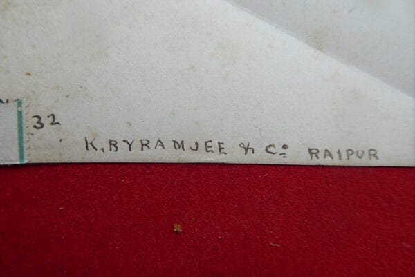 The 8½ x 6 ins print has a few creases and a small closed edge tear at the lower left corner and is marked on the verso by the photographer K. BYRAMJEE, &Co, RAIPUR. The classic pose of syce and horse is typical of those used in earlier Company paintings by artists such as Shaikh Muhammad Khan of Karraya before the advent of photography. The date of this image may well be 1870s. jul16/1