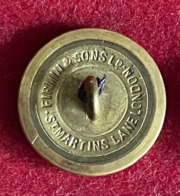 Unidentified armorial livery button with a crest of demi lion emerging from a mural crown, the lion further charged with a crown or coronet. THez gilt 25mm button has the backmark FIRMIN & SONS LD. ST MARTINS LANE LONDON. The button retians full gilt finish and probably dates from the early 20th century.  mar15/1
