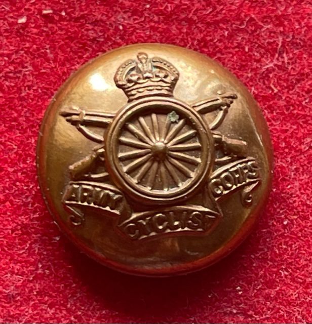 An other ranks brass 18mm button of the short lived Army Cyclist Corps with the bakckmark ESTABLISHED 1763. jun26/8