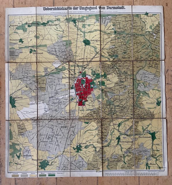 Uebersichtskarte der Umgegend von Darmstadt. F. Heberer [darmstadt] no date but probably around 1900.