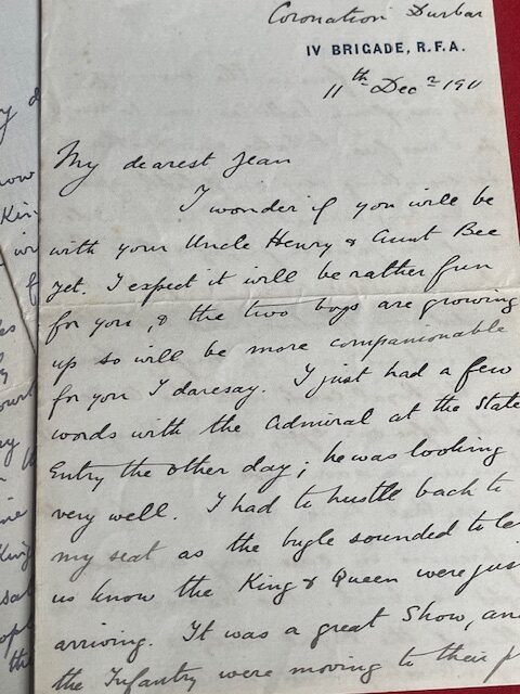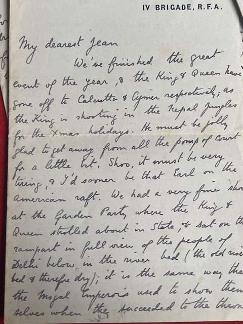 Delhi Durbar 1911. A sequence of letters from the event to their daughter by the Lieutenant Colonel commanding the 4th Brigade R.F.A. and his wife.