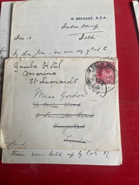 The 9 letters are written on standard small sized writing paper 7 x 4½ ins, mainly in the form of a bifolium giving four pages. The commanding officer of IV Brigade R.F.A. was Lieutenant Colonel Lochinvar Alexander Charles Gordon and his command consisted of Headquarters and three Batteries. Although the formal events of the Durbar took place from the 7th to the 16th December the Gordons arrived over a week earlier as there was much preparationto take place.