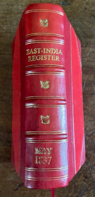 The East India Register and Directory for 1837; containing complete Lists of the Company’s Servants, with their respective Appointments; with Indexes to the Same, and Lists of Casualties….Births, Marriages and Deaths in India…List of the Proprietors of East India qualified to vote … compiled by Permission of the East India Company…by F. Clark of the Secretary’s Office, East India House. 2nd Edition corrected to 22nd May 1837. Wm. H. Allen, and Co. [London] 1837 small 8vo.