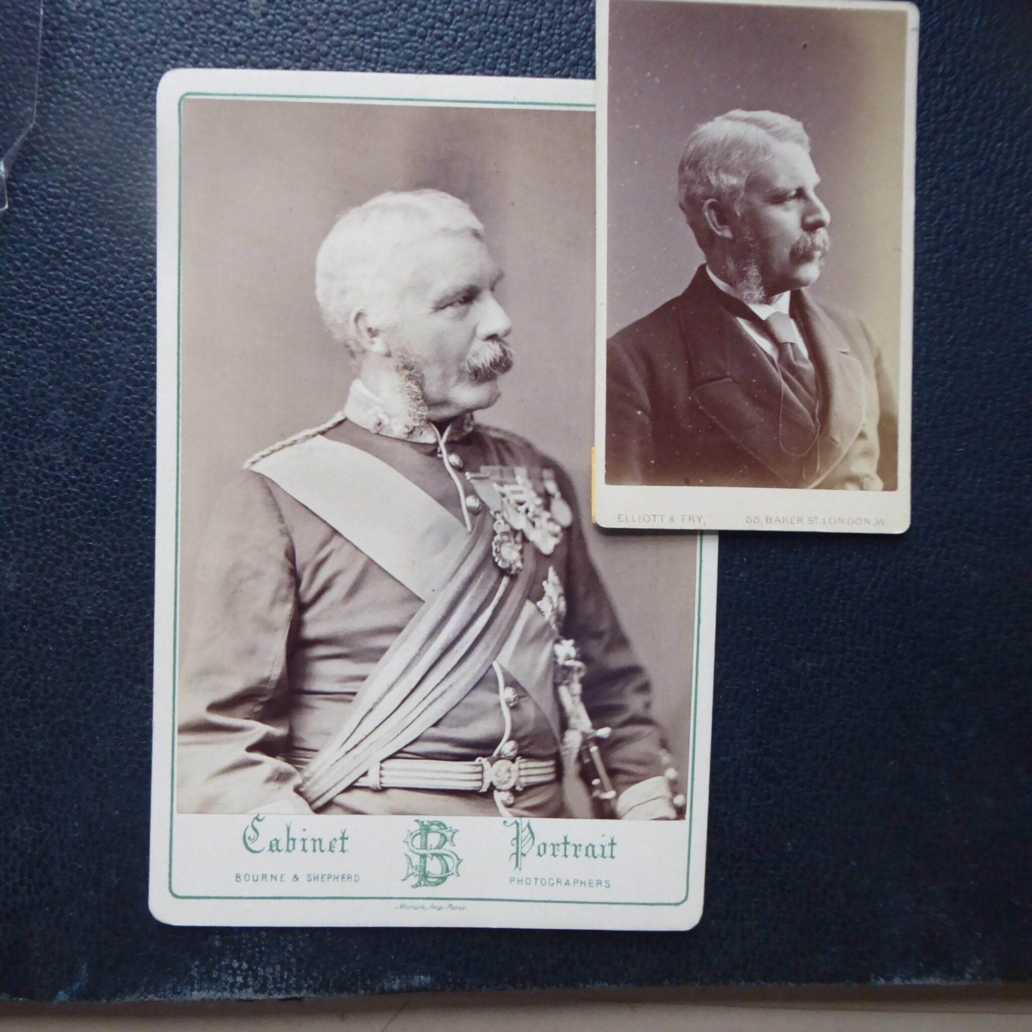 General Sir Frederick Paul Haines [1819-1909]. A good bust length carte de visite by Elliot & Fry, 55 Baker Street, Portman Square, London of the general in civilian dress. circa late 1870s. He looks perhaps a little younger than the cabinet portrait of him by Bourne & Shepherd [sold but still visible elsewhere in this section]. His long career is well recorded in the DNB volume for 1901-11 and below we quote his service record from Hart’s Army List 1907 when he was the senior Field Marshal and Colonel of his old regiment the Royal Scots Fusiliers. This card came from an old cdv album put together by General Sir Peter Lumsden. apr28/3 SOLD