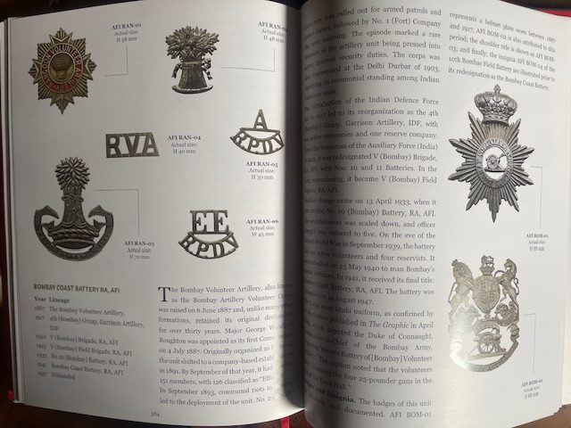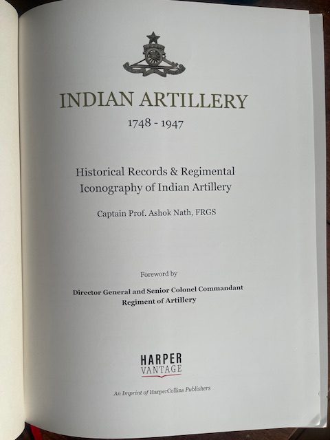 INDIAN ARTILLERY 1748 – 1947. Historical Records & Regimental Iconography of Indina Artillery. Harper Vantage 2026 P-ISBN: 9789373077987. 1st Edition 4to [11 x 9 ins.]. vii, 401pp, viii-xxix. A welcome new book by Captain Prof. Ashok Nath, FRGS, the result of a huge amount of recent research. It is lavishly illustrated, mainly in colour, with uniform badges,both metal and cloth, and buttons. As well as dealing with the East India Company’s and the post Mutiny British Artillery the book also deals with the Artillery of the Princely States.