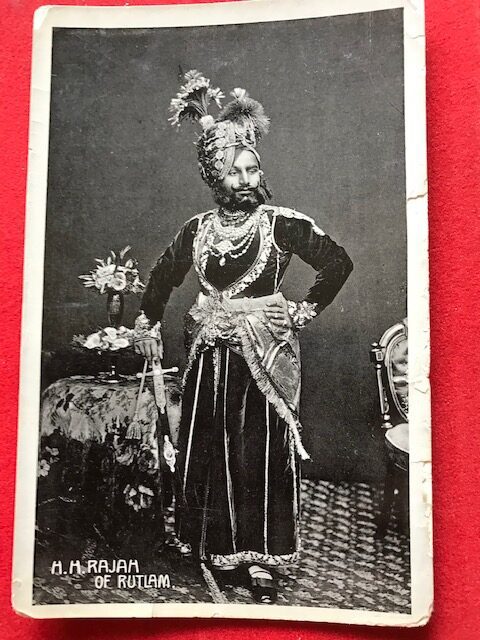 The three post cards are all by D Marcopolo & Co., Calcutta . They are priced at £10 each and from top left clockwise they are identified on the cards as H.H. RAJAH OF RUTLAM, MAHARAJA OF JEYPORE, H.H. LATE MAHARAJA OF BUNDY. There is a little edge damage to Ratlam, which is the most unusual of the cards. jul31/2