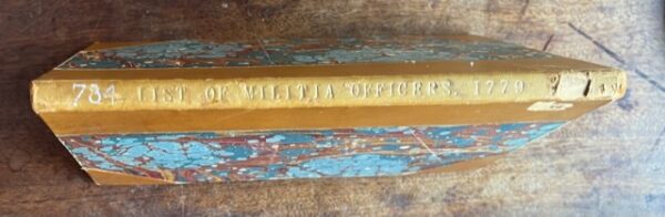 Title page, advertisement to 1st edition, advertisement from London Gazette, contents list, 75pp, publisher’s advertisement. Later 19th/20th century half brown leather with marbled boards, title in gilt running up the spine, shelf number in white ink to spine and mark where a taped label has been removed, top edges gilt, very clean and sound throughout, private armorial bookplate of Hugh E. E. Everard and shelf number to pastedown, no other ownership marks present or removed. Brief description of regimental uniform colours is given (as: red faced with light blue). Although many of the corps are located where their name would suggest it is interesting to note examples such as Pembrokeshire Militia at Maidstone, West Kent at Weymouth, Cheshire at Rochester, etc. A scarce book.