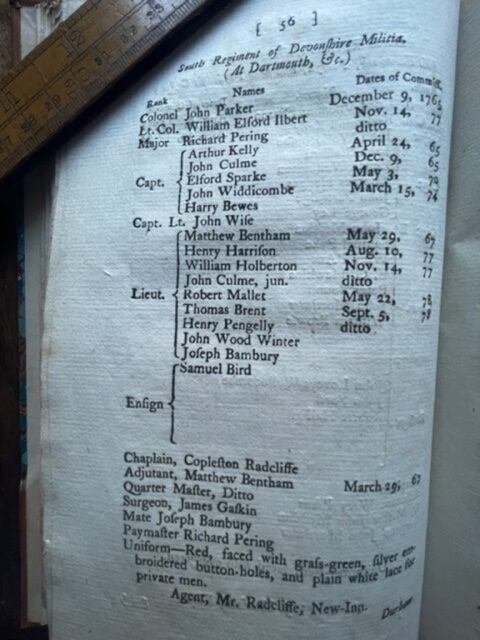 For the Year 1779. A List of the Officers of the Militia of England and Wales. With lists of the Lords Lieutenants and Agents; the place where each Corps is now quartered; the number of men raised by each county; and a complete Index of the officers names. The Sixth Edition. Printed for J. Almon, opposite Burlington House [London] 1779 8vo.