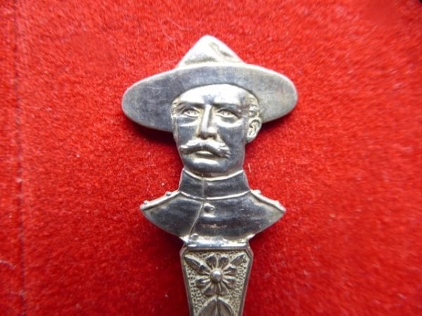 The six spoons are hallmarked in Birmingham 1899 -1900 and each spoon is approximatel 4.5ins [113mm] overall. Each has the finial struck in the form of a general famous at the time of manufacture. Two of the these generals were Commander in Chief India at some time – Lord Kitchener and Lord Roberts. The others arse Generals Buller, White, French and Baden-Po=well. The bowl of the spoon is engraved with the appropriate name.