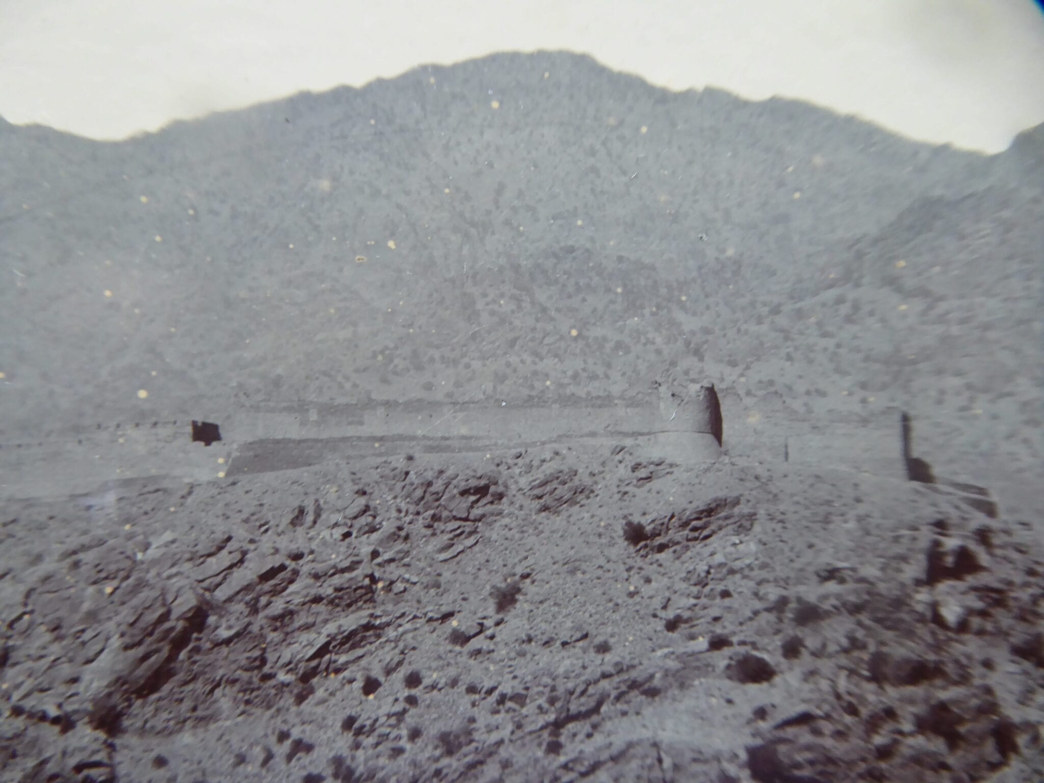 A photograph, measuring 11.5 x 8.5 ins, signed Holmes in the negative, lower left. The view, a little faded and discoloured at the edges, shows one of the commanding forts in the middle distance, a few that would have been familiar to many British troops in the nineteenth century as they trecked through the gorges in this inhospitable land.