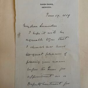 Lieutenancy of the County of Aberdeenshire. Appointment 1889 of Sir Peter Lumsden